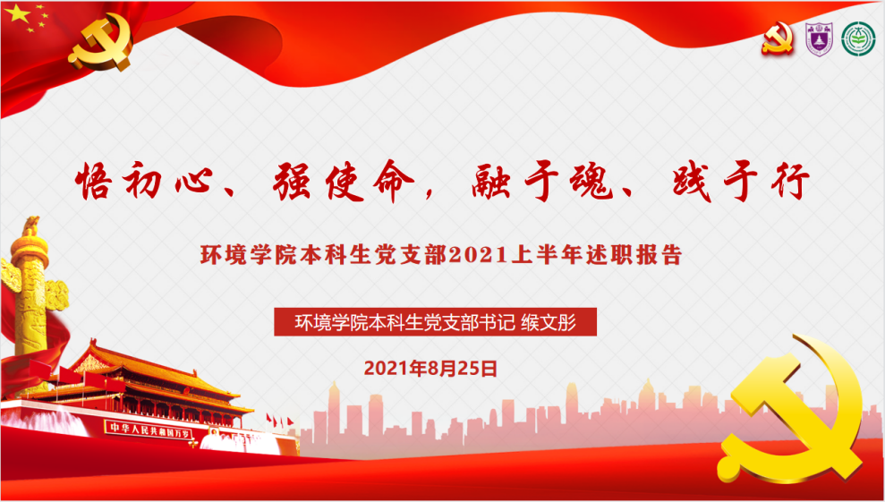 第二个环节,缑文彤作题为"悟初心、强使命,融于魂、践于行"述职报告,回顾了2021年上半年支部的工作情况及建设成果。在支部建设方面,支部坚持实行"三会一课"制度,结合党史学习教育主题,深入开展"两学一做"常态化学习教育活动,通过建立《入党积极分子成长档案》进一步完善了入党积极分子管理制度;在党史学习教育方面,支部认真贯彻"学史明理、学史增信、学史崇德、学史力行"要求,围绕献礼建党100周年开展"星火菁英计划"应知应会每日分享,组织党员学习"美丽中国 红色筑梦"系列党团课,积极开展"美丽中国 红船筑梦"系列党团实践活动。支部党员赴南京市红山动物园和南京仙林外国语小学开展生物多样性科普调研,以实际行动助力绿色可持续发展,通过开展"诵红色经典,忆百年征程"诗歌朗诵会、"百年征程,携手逐梦"师生联谊拔河赛、采访学院老党员同志等,引导支部成员在实践中感悟党史教育精神、锤炼党性修养、汲取初心力量,将红船精神融于魂、践于行,2021年,党支部荣获蜜糖直播 "先进基层党支部"荣誉称号。针对工作中存在的特色活动创新性有待提升以及志愿活动覆盖面窄等问题,缑文彤提出下半年将加强与学院团学组织的联动,打造富有专业特色的本科生支部品牌活动。