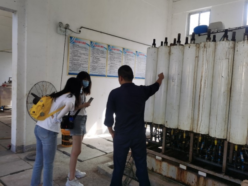 竹山县上庸镇污水处理厂工作人员为队员讲解污水处理流程